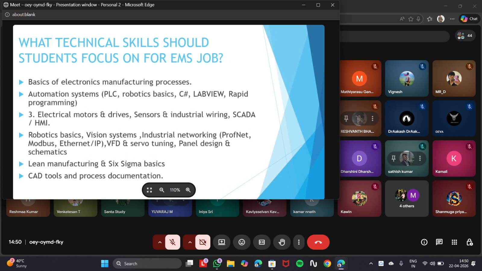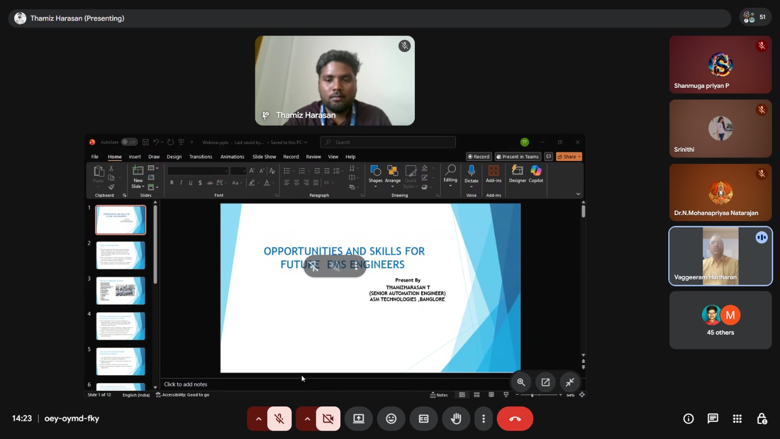 Dr. V. Hariharan, Principal, Paavai College of Engineering, delivered the presidential address, in which he emphasized that, The EMS industry is emerging as a backbone of modern technological development. With the rise of smart devices, automation, electric vehicles and Industry 4.0, the demand for skilled EMS engineers is increasing at an unprecedented rate. India, in particular, is positioning itself as a global hub for electronics manufacturing, opening doors to vast career opportunities for our graduates.
