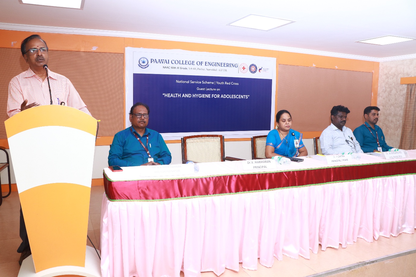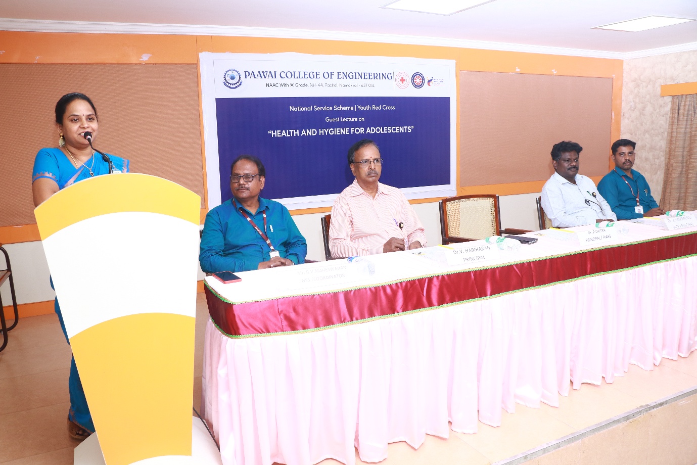 The National Service Scheme (NSS) and Youth Red Cross (YRC) of Paavai College of Engineering organized a programme on “Health and Hygiene for Adolescents” on 4th April 2026 at Brilliant Hall. The objective of the programme was to create awareness among students about the importance of maintaining proper health, personal hygiene, and a healthy lifestyle during adolescence.