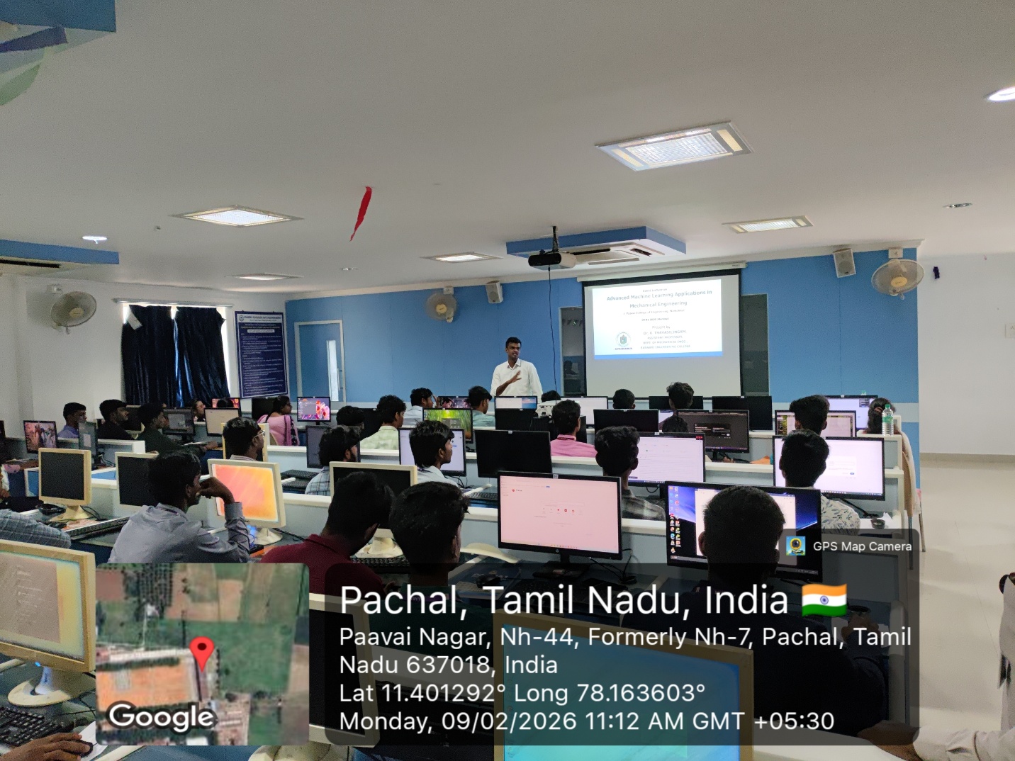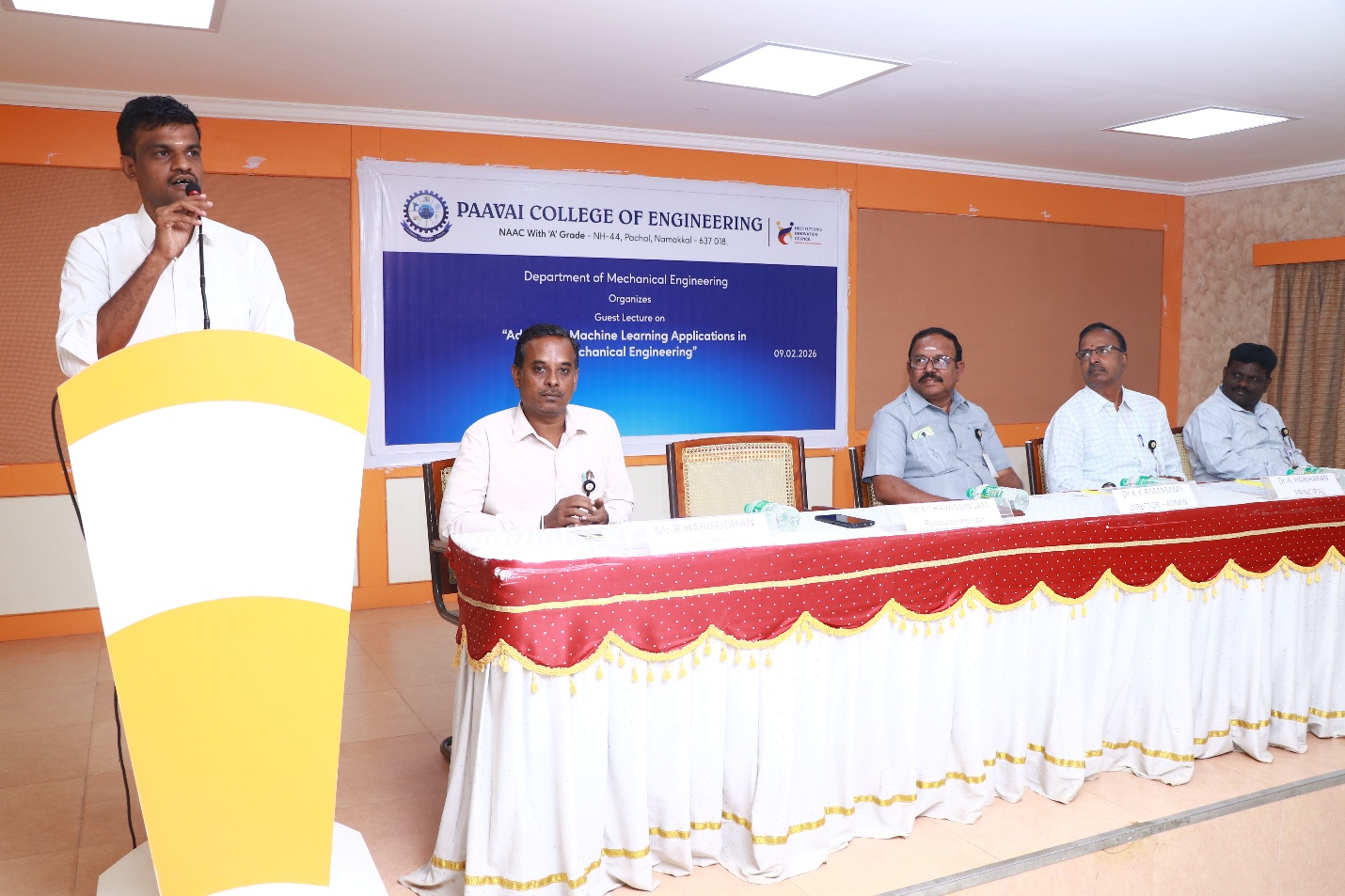 The Department of Mechanical Engineering organized a guest lecture on “Advanced Machine Learning Applications in Mechanical Engineering” on February 9, 2026. The programme commenced with a prayer song followed by the Tamilthai Valthu.