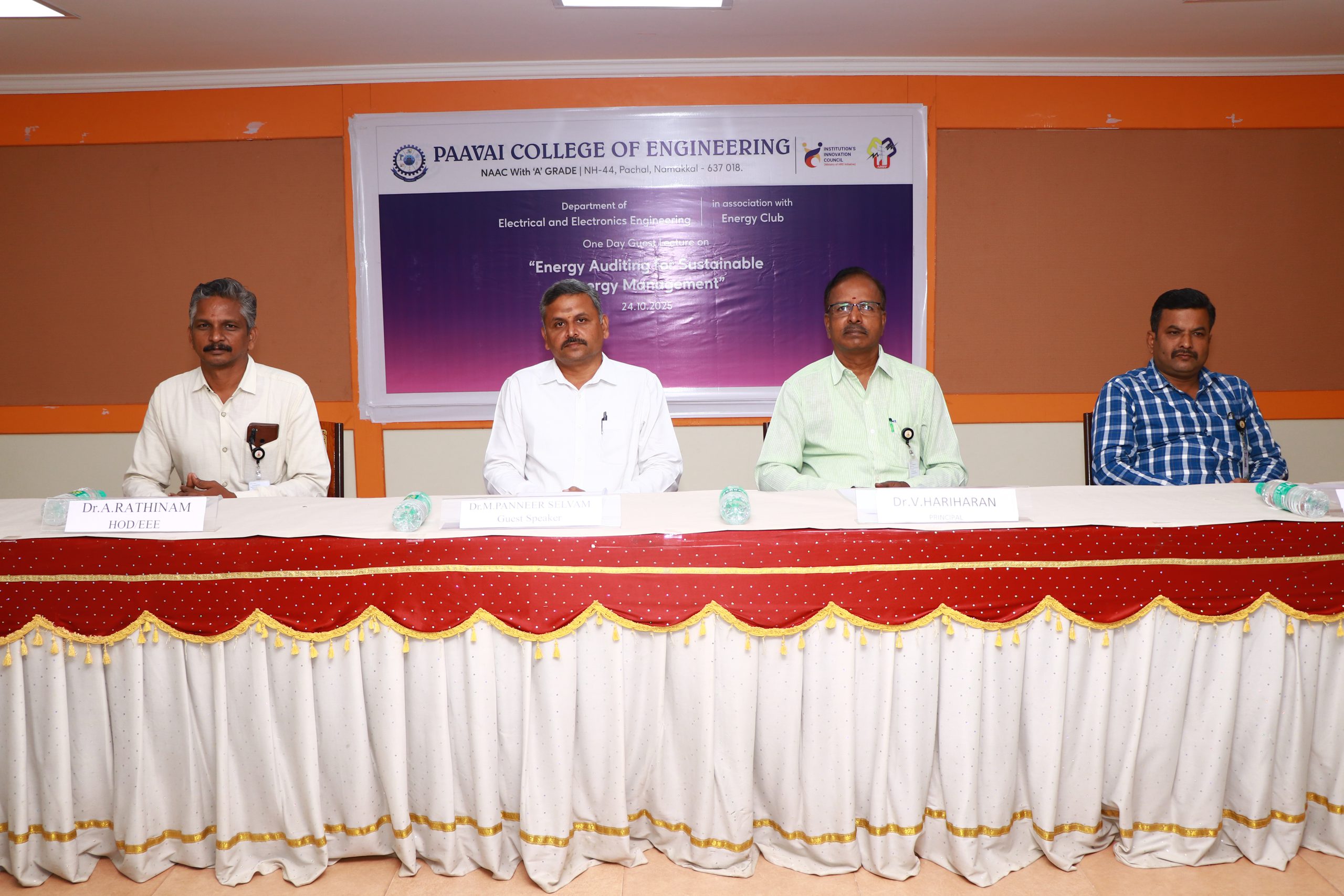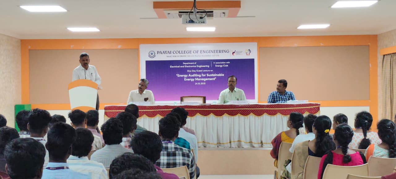 The Department of Electrical and Electronics Engineering, in association with the Energy Cell, organized a guest lecture on “Energy Auditing for Sustainable Energy Management” on 24th October 2025.