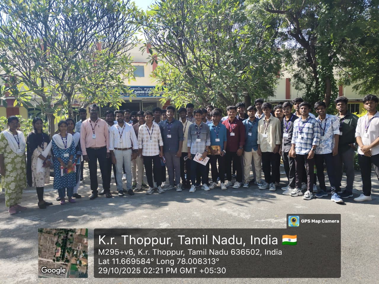 The Department extends its sincere gratitude to the officials of K.R. Thoppur Substation for their cooperation and guidance. The visit was coordinated by Dr. A. Rathinam and Prof. D. Saravanan.