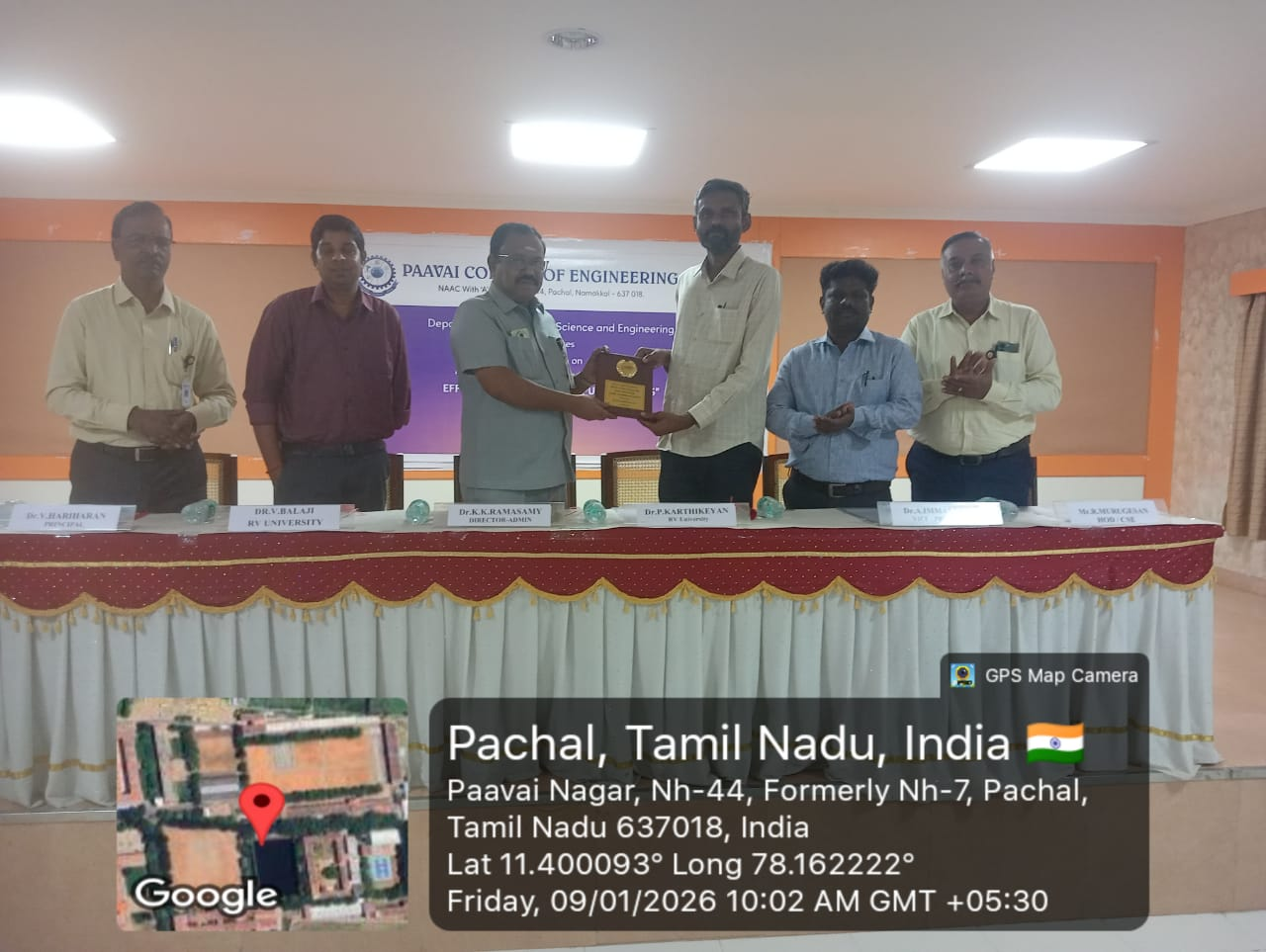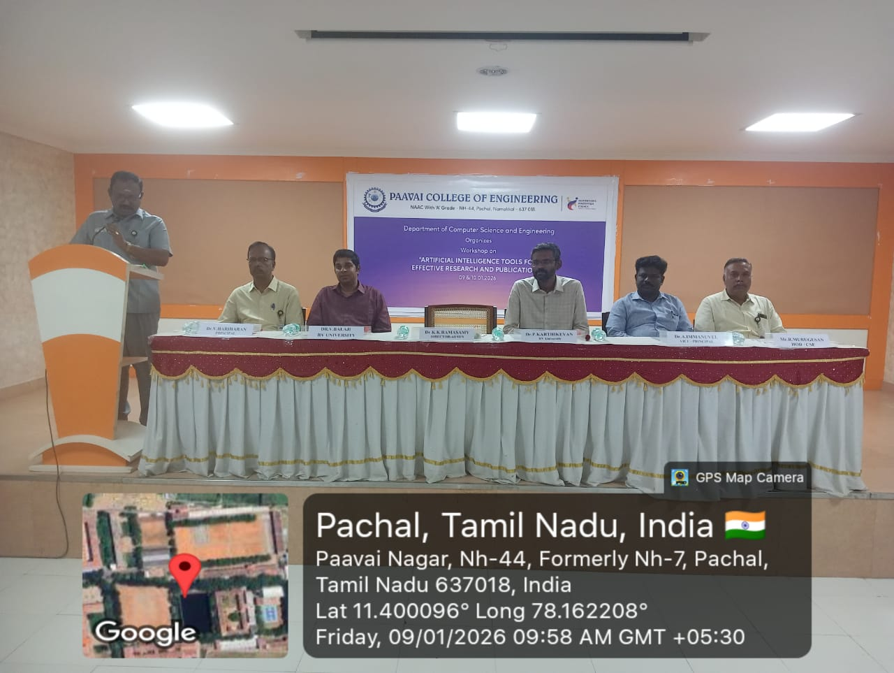 Department of Computer Science and Engineering organized a Two Days National Level Workshop on “Artificial Intelligence Tools for Effective Research and Publications” on 09.01.2026 and 10.01.2026 at Brilliant Hall. The program commenced with a prayer song, followed by Tamil Thai Vazhthu. The Workshop commenced with a warm welcome address by Ms. T. Srimathi, II-year CSE student. Ms,R.Shruthika (II Year CSE) introduced the guest speaker, Dr.P.Karthikeyan,M.E,Ph.D.,PDF., Associate Professor and Center Head (Centre for Applied and Responsible AI),School of Computer Science and Engineering, R V University, Bengaluru and Dr.V.Balaji,Ph.D., Associate Professor School of Computer Science and Engineering, RV University, Bengaluru. The Presidential address is delivered by Dr.K.K.Ramasamy, Director-Administration, Paavai Institutions. In this keynote address, Dr.P.Karthikeyan provided valuable insights into highlighted the rapid growth of AI has transformed the research ecosystem by offering intelligent tools for literature review, data analysis, Grammar and language refinement, citation management, journal selection, Peet-review response drafting, and research impact assessment.